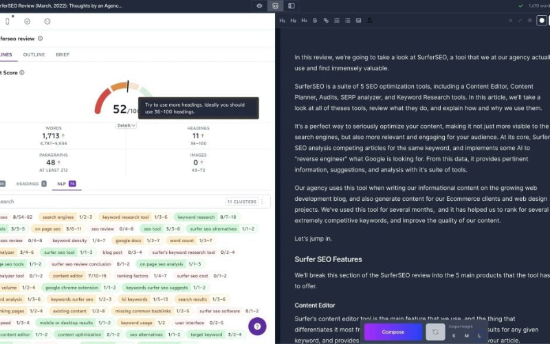 - Phân tích đối thủ: Đánh giá nội dung của các bên khác để giúp bạn xây dựng bộ khung bài viết đầy đủ và chất lượng hơn.